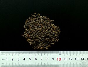 - 吴茱萸:呈球形或略呈五角状扁球形,直径 2~5mm。表面暗黄绿色至褐色,粗糙,有多数点状突起或凹下的油点。顶端有五角星状的裂隙,基部残留被有黄色绒毛的果梗。质硬而脆,横切面可见子房 5 室,每室有淡黄色种子 1 粒。气芳香浓郁,味辛辣而苦。以饱满、色绿、香气浓郁者为佳。
