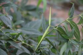 多年生直立草本,高达50厘米;根须状;茎被有单列柔毛及幼嫩部分有微毛外,余皆无毛,单茎或略有分枝。叶对生,薄纸质,卵状披针形,长3-10厘米,宽1-3厘米,顶端渐尖,基部宽楔形;侧脉约4对,在边缘网结,有时有边毛;叶柄长约5毫米,顶端腺体成群。伞形聚伞花序腋生,长约2厘米,比叶为短,着花不到10朵;花萼5深裂,内面基部有小腺体5个;花冠紫红色,裂片卵状长圆形;花粉块每室1个,下垂;副花冠肉质、裂片龙骨状,在花药基部贴生;柱头圆形,略为突起。蓇葖双生,狭披针形,向端部长渐尖,基部紧窄,外果皮有细直纹,长约7厘米,直径5毫米;种子黄褐色,扁平,长圆形,长约5毫米,宽3毫米;种毛白色绢质,长2厘米。花期5-7月,果期6-8月。