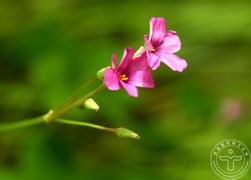 多年生直立草本。无地上茎,地下部分有球状鳞茎,外层鳞片膜质,褐色,背具3条肋状纵脉,被长缘毛,内层鳞片呈三角形,无毛。叶基生;叶柄长5-30厘米或更长,被毛;小叶3,扁圆状倒心形,长1-4厘米,宽1.5-6厘米,顶端凹入,两侧角圆形,基部宽楔形,表面绿色,被毛或近无毛;背面浅绿色,通常两面或有时仅边缘有干后呈棕黑色的小腺体,背面尤甚并被疏毛;托叶长圆形,顶部狭尖,与叶柄基部合生。总花梗基生,二歧聚伞花序,通常排列成伞形花序式,总花梗长10-40厘米或更长,被毛;花梗、苞片、萼片均被毛;花梗长5-25毫米,每花梗有披针形干膜质苞片2枚;萼片5,披针形,长约4-7毫米,先端有暗红色长圆形的小腺体2枚,顶部腹面被疏柔毛;花瓣5,倒心形,长1.5-2厘米,为萼长的2-4倍,淡紫色至紫红色,基部颜色较深;雄蕊10枚,长的5枚超出花柱,另5枚长至子房中部,花丝被长柔毛;子房5室,花柱5,被锈色长柔毛,柱头浅2裂。花、果期3-12月。