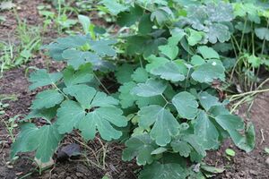 根肥大,圆柱形,粗达1.5厘米,简单或有少数分枝,外皮黑褐色。茎高15-50厘米,常在上部分枝,除被柔毛外还密被腺毛。基生叶少数,二回三出复叶;叶片宽4-10厘米,中央小叶具1-6毫米的短柄,楔状倒卵形,长1.5-3厘米,宽几相等或更宽,上部三裂,裂片常有2-3个圆齿,表面绿色,无毛,背面淡绿色至粉绿色,被短柔毛或近无毛;叶柄长达18厘米,疏被柔毛或无毛,基部有鞘。茎生叶数枚,为一至二回三出复叶,向上渐变小。花3-7朵,倾斜或微下垂;苞片三全裂;花梗长2-7厘米;萼片黄绿色,长椭圆状卵形,长1.2-1.5厘米,宽6-8毫米,顶端微钝,疏被柔毛;花瓣瓣片与萼片同色,直立,倒卵形,比萼片稍长或稍短,顶端近截形,距直或微弯,长1.2-1.8厘米;雄蕊长达2厘米,伸出花外,花药长椭圆形,黄色;退化雄蕊白膜质,线状长椭圆形,长7-8毫米;心皮密被伸展的腺状柔毛,花柱比子房长或等长。蓇葖长1.5厘米;种子黑色,狭倒卵形,长约2毫米,具微凸起的纵棱。5-7月开花, 7-8月结果。