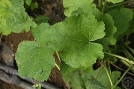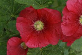 二年生直立草本,高达2米,茎枝密被刺毛。叶近圆心形,直径6-16厘米,掌状5-7浅裂或波状棱角,裂片三角形或圆形,中裂片长约3厘米,宽4-6厘米,上面疏被星状柔毛,粗糙,下面被星状长硬毛或绒毛;叶柄长5-15厘米,被星状长硬毛;托叶卵形,长约8毫米,先端具3尖。花腋生,单生或近簇生,排列成总状花序式,具叶状苞片,花梗长约5毫米,果时延长至1-2.5厘米,被星状长硬毛;小苞片杯状,常6-7裂,裂片卵状披针形,长10毫米,密被星状粗硬毛,基部合生;萼钟状,直径2-3厘米,5齿裂,裂片卵状三角形,长1.2-1.5厘米,密被星状粗硬毛;花大,直径6-10厘米,有红、紫、白、粉红、黄和黑紫等色,单瓣或重瓣,花瓣倒卵状三角形,长约4厘米,先端凹缺,基部狭,爪被长髯毛;雄蕊柱无毛,长约2厘米,花丝纤细,长约2毫米,花药黄色;花柱分枝多数,微被细毛。果盘状,直径约2厘米,被短柔毛,分果爿近圆形,多数,背部厚达1毫米,具纵槽。花期2-8月。